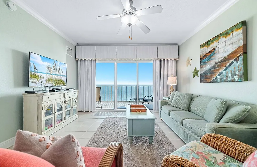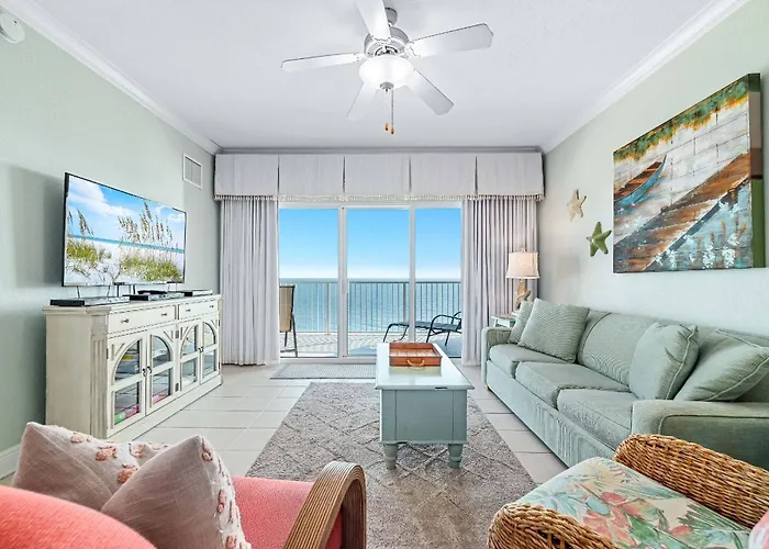 Situated 2.5 miles from the rentable multi-use Johnnie Sims Park Pavilion, the beachfront Crystal Shores West 605 Gulf Shores villa entices guests to enjoy windsurfing, snorkeling, and hiking in the area. Offering a Jacuzzi bathtub, a hot tub, and a sauna, the Gulf Shores villa is about 10 minutes by car from Alabama Gulf Coast Petting Zoo.